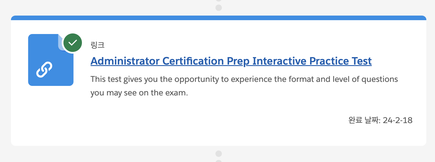 어드민 공식 트레일헤드(Prepare for Your Salesforce Administrator Credential)에 있는 연습문제를 8번 풀고 해설도 달달 외울정도로 봤지만 연습문제는 그냥 개념을 잘 이해했는지 확인용으로만 참고하세요 ㅠㅠ 문제는 훨씬 어려웠습니다.