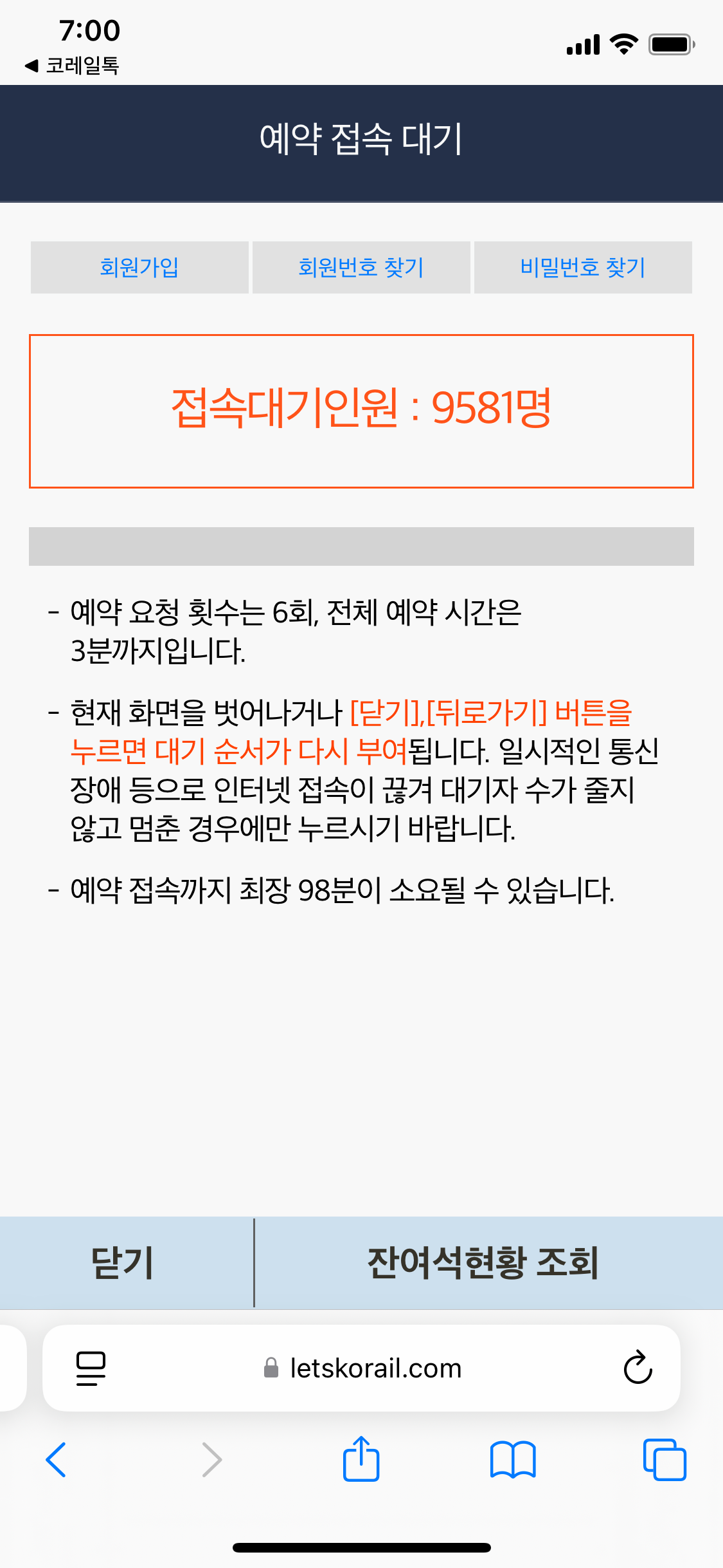설 KTX는 성공적으로 예매했다. 7시 땡하자 마자 들어갔는데 대기가 이렇게 많을 수 있나?